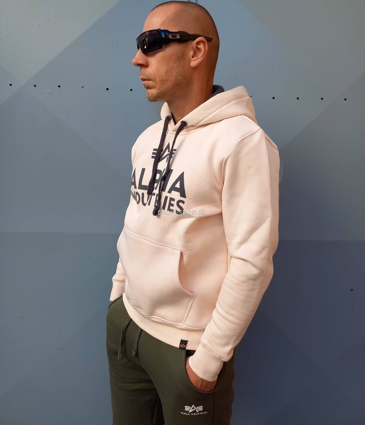 Kvalitná a štýlová mikina s veľkým vystúpeným logom Alpha Industries na prednej strane.